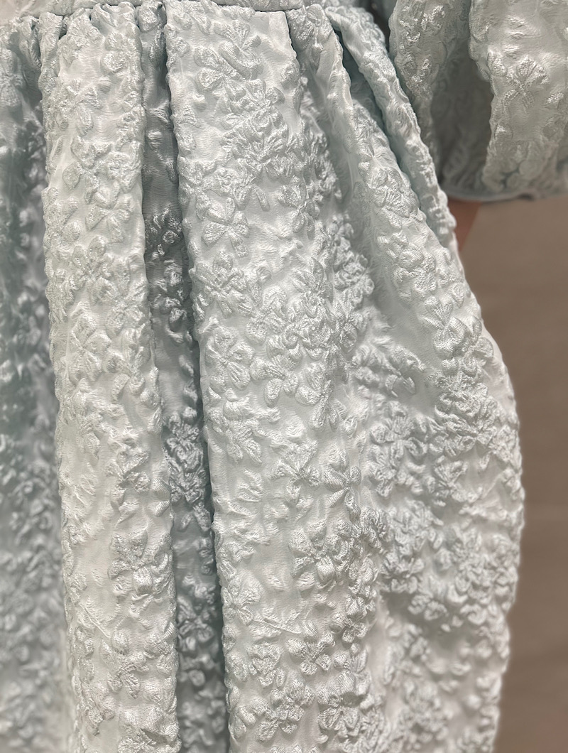 愛らしいチューリップをイメージしたシルエットのスカートが特徴的な1着。セシリーならではの軽やかかつ上品な生地を贅沢に使用しており、着る人やスタイリングによってフェミニンにもエレガントにもドレスアップしていただけます。
